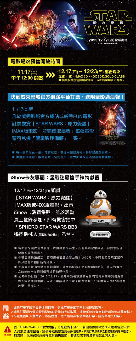 看IMAX3D的原力覺醒可以抽BB-8一路發耶 - 電影